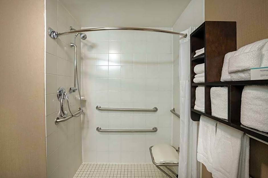 Any corresponding photo may not reflect the specific accessible room type or room feature. This mobility accessible, nonsmoking room features one king sized bed , and an accessible roll-in shower. The room features comfortable soft seating, microwave, refrigerator, a HDTV, and easy to operate alarm clock/radio. The free high speed internet access will help you stay connected while on the road. If you prefer not to work at the desk, you can use the convenient lapdesk instead. You'll also enjoy the convenience of having a coffee maker with tea service and iron/ironing board in your room.
